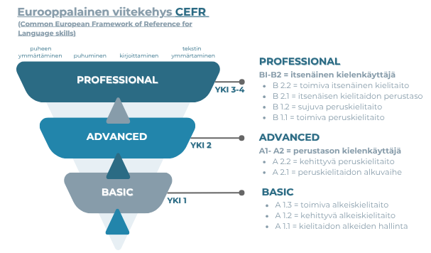 The education progresses and learning outcomes are assessed in accordance with the European CEFR framework, which guarantees clear and internationally comparable level descriptions for the development of language skills.